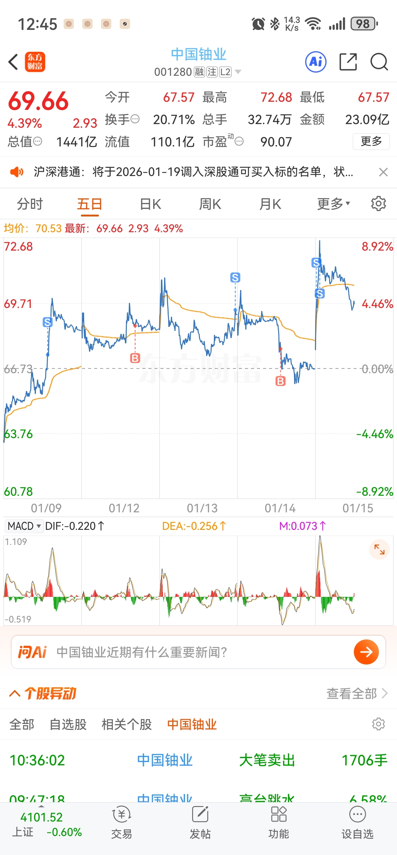 $中国铀业(SZ001280)$ 看下午给机会接回不