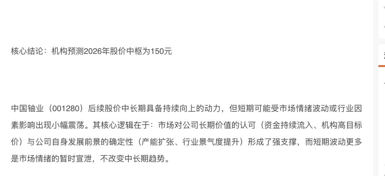 $中国铀业(SZ001280)$ 唯一的铀王供需失衡别妄想做空战略稀缺能源,铀王真不是在炒作是真价值,深股开通第一天外资就迫不及待买了数亿以计及四大机构持续买入稳控股价,龙头股是永远打不死的,4大机构不会轻易让低价便宜让买入,卡梅科周涨4天新高并长期数年向上回调一天正常,铀王已经提钱回调完成了,国内各行各业均落后漂亮国唯有铀肯定比漂亮国强,卡梅科要跟铀王走势。不要看反了。