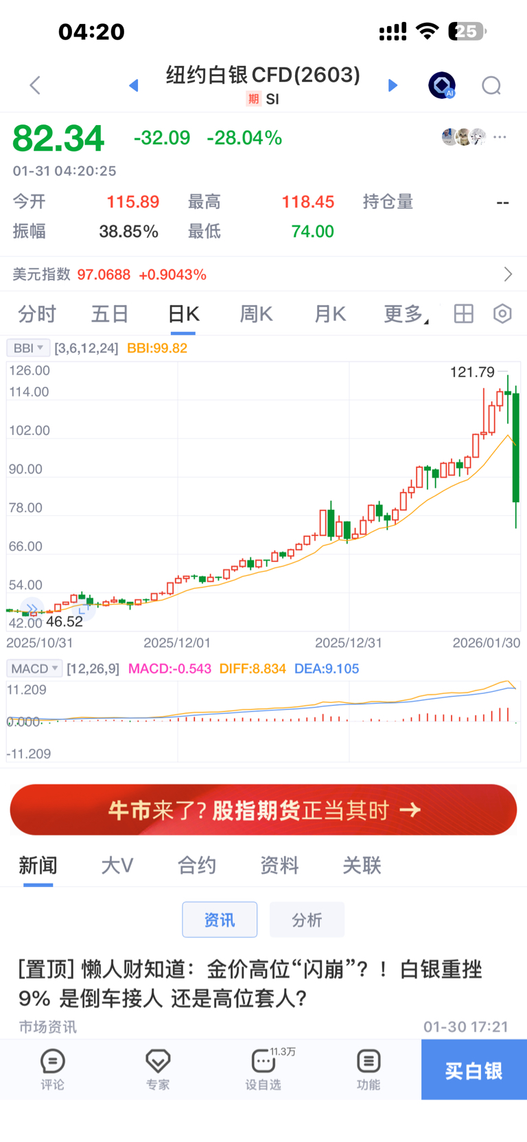 $中国铀业(SZ001280)$ 白银暴跌造成的情绪影响