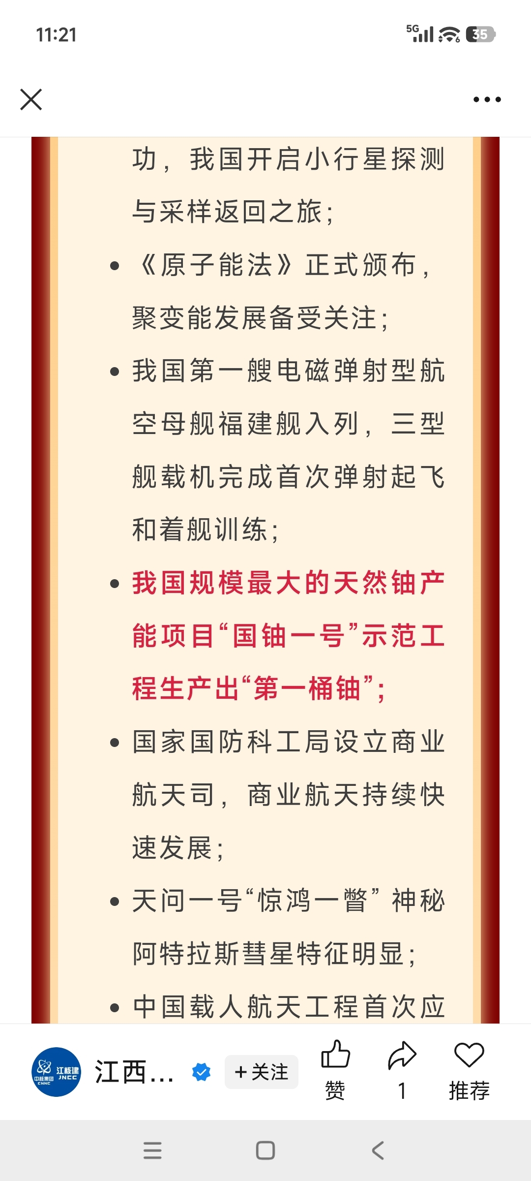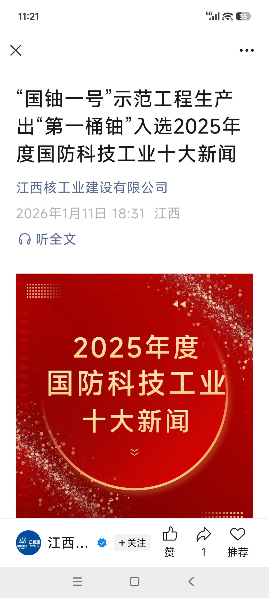 学习国铀一号入选2025年十大国防科技新闻