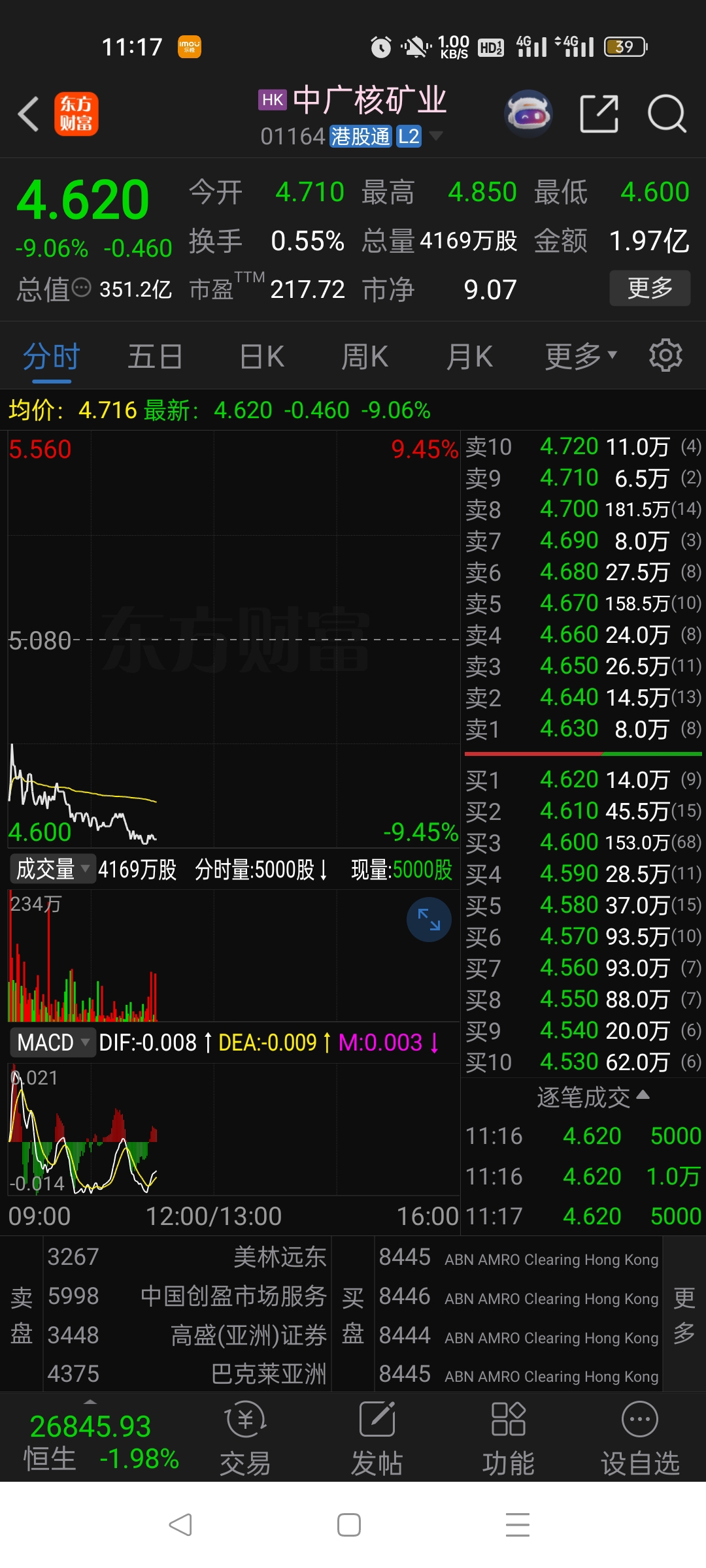 $中国铀业(SZ001280)$ 港股都跌9个点了,你今天必跌9个点,时间就在下午1点半左右