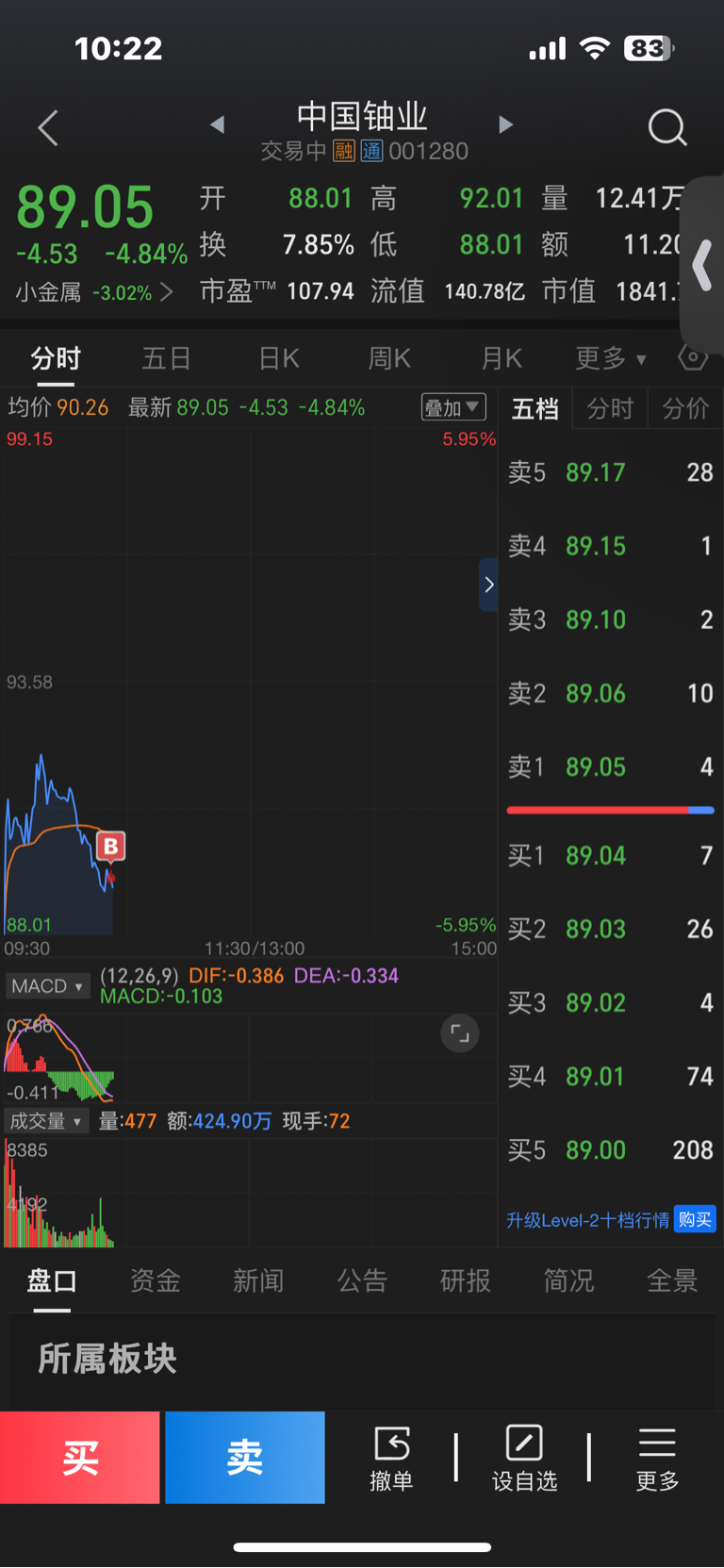 $中国铀业(SZ001280)$ 明天会不会继续下跌