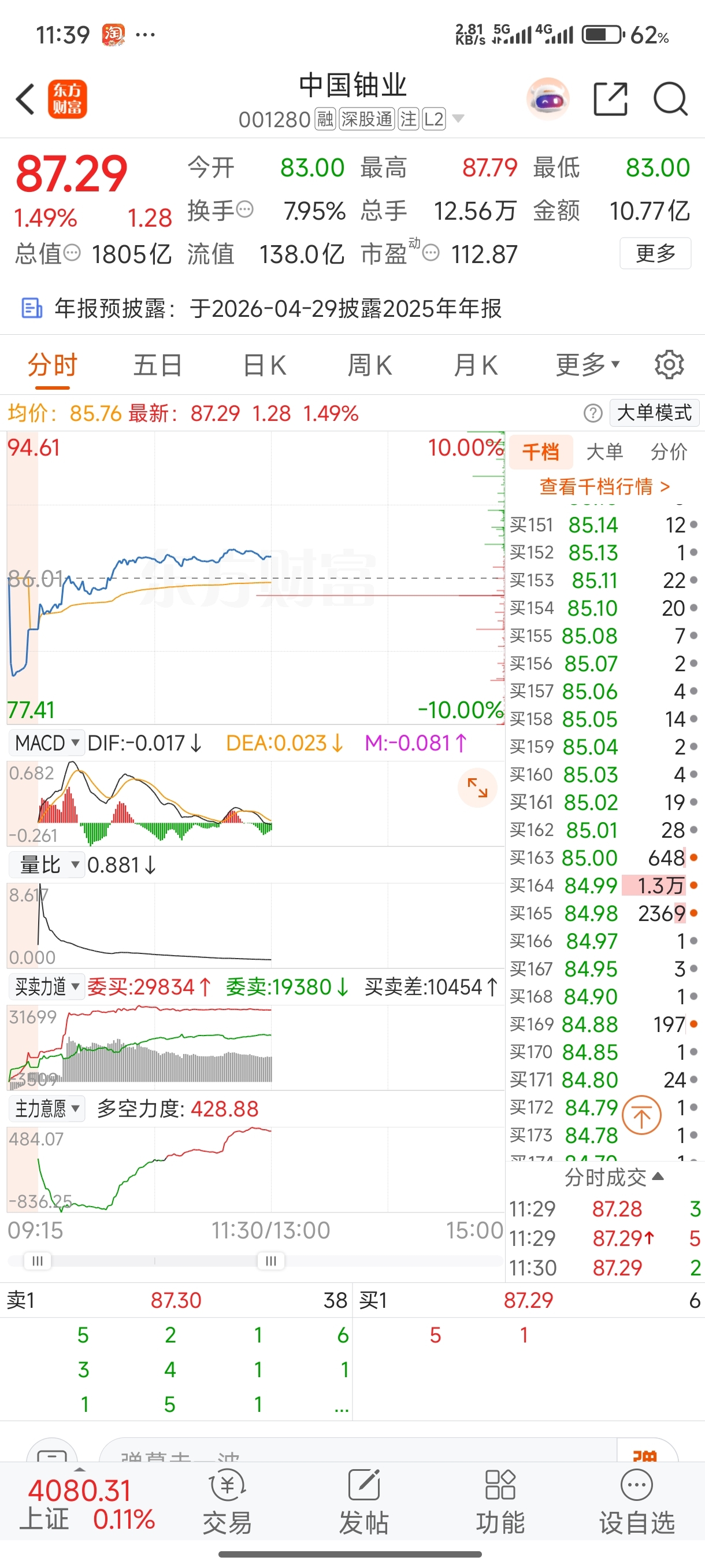 今天万手哥84.99元又在下边托单了,咋天85.99元1.7万手托单,光托不买有