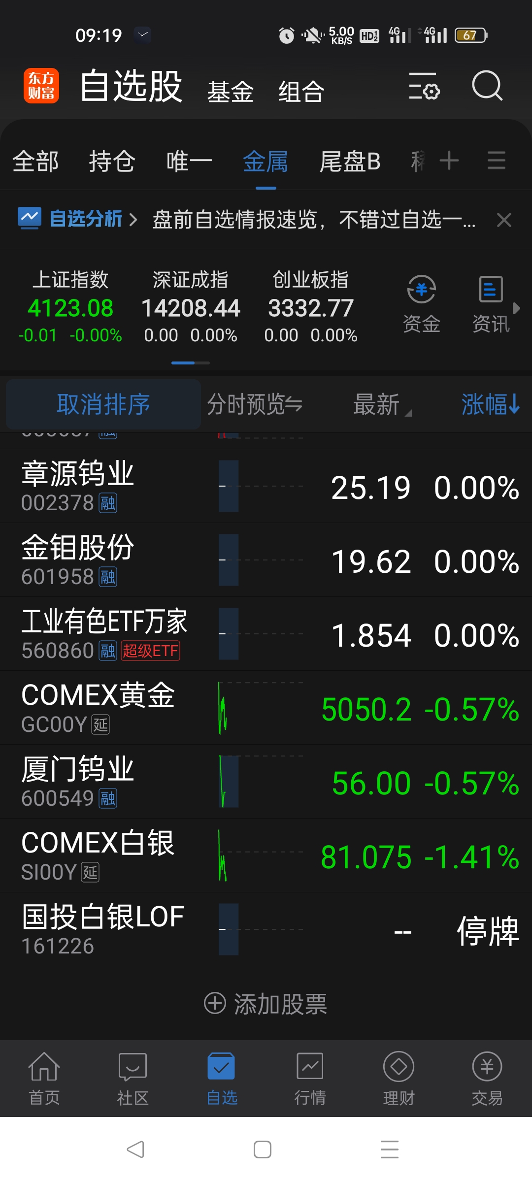 $中国铀业(SZ001280)$ 黄金白银跳水了,注意今天买进的要吃面