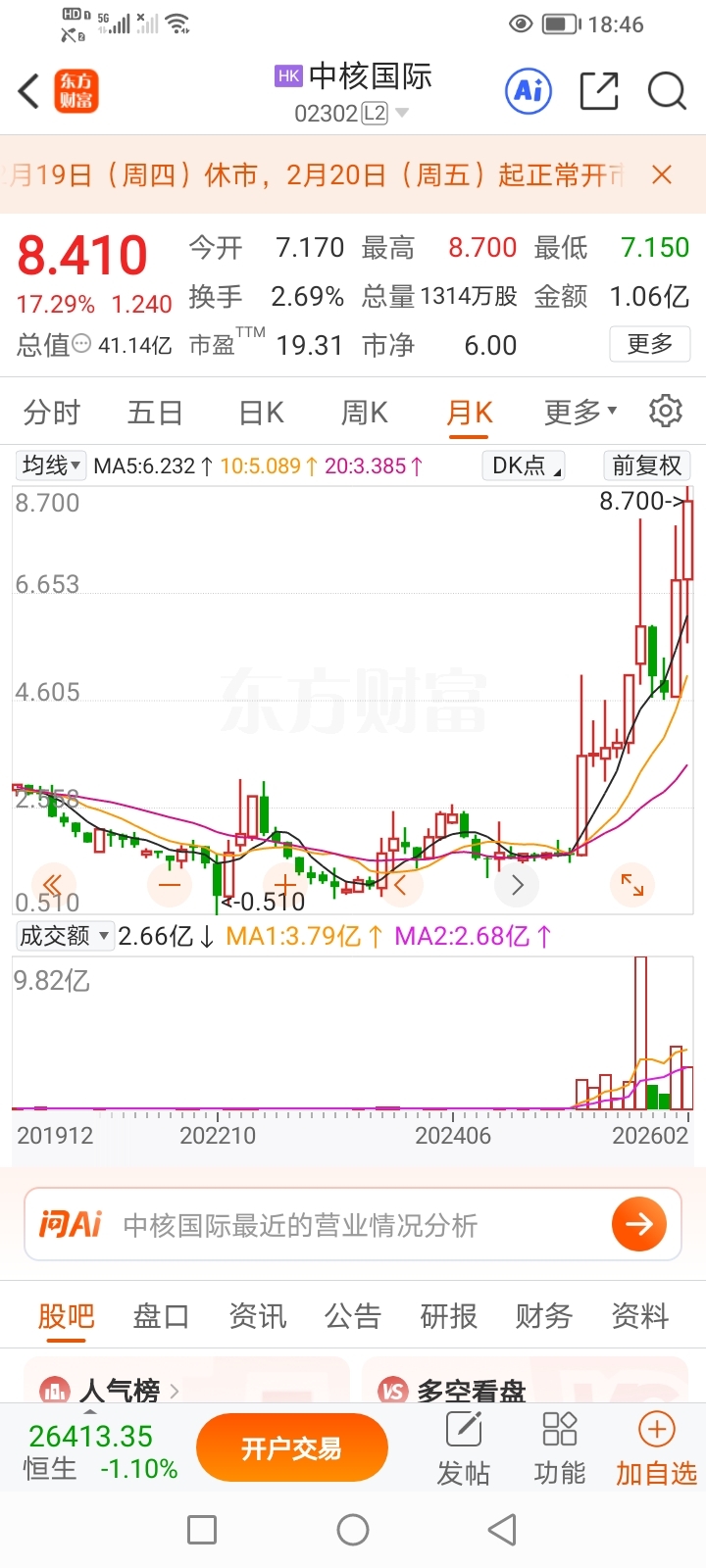 $中国铀业(SZ001280)$ 看港股中核国际得走势,谁能告诉我,中国铀业有没有投资中核国际?