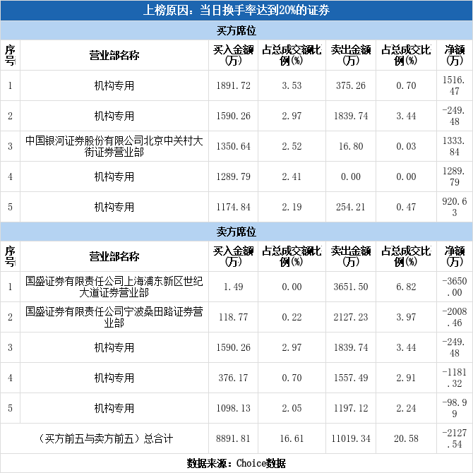 多主力现身龙虎榜,三联锻造换手率达27.58%(10-20)