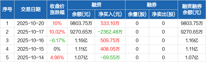 三联锻造:融资净买入533.1万元,融资余额9803.75万元(10-20)