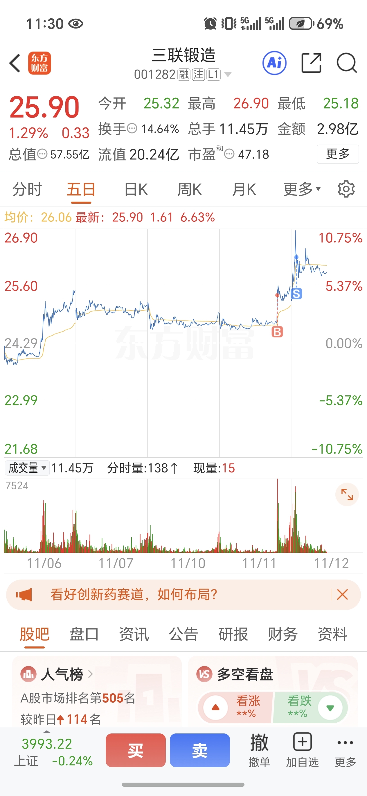 $三联锻造(SZ001282)$ 赚3个多点跑了,垃急