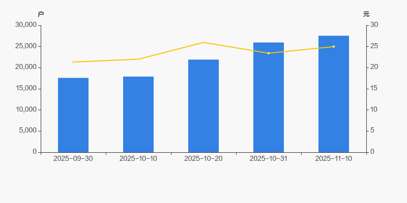 截至2025年11月10日,公司最新总股本为2.22亿股,其中流通股本为7816.48万股。户均持有流通股数量由上期的3011股下降至2837股,户均流通市值7.09万元。