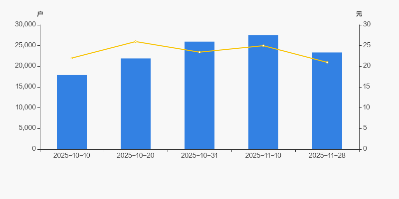 2025年10月10日至今,公司股东户数显著增长,区间涨幅为30.47%。2025年10月10日至2025年11月28日区间股价下降4.73%。