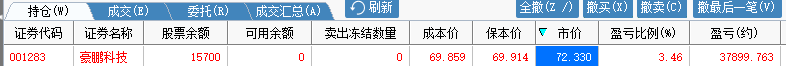 星期五低价买进来的8000股已经72.81卖掉了,现在又多买进来一些