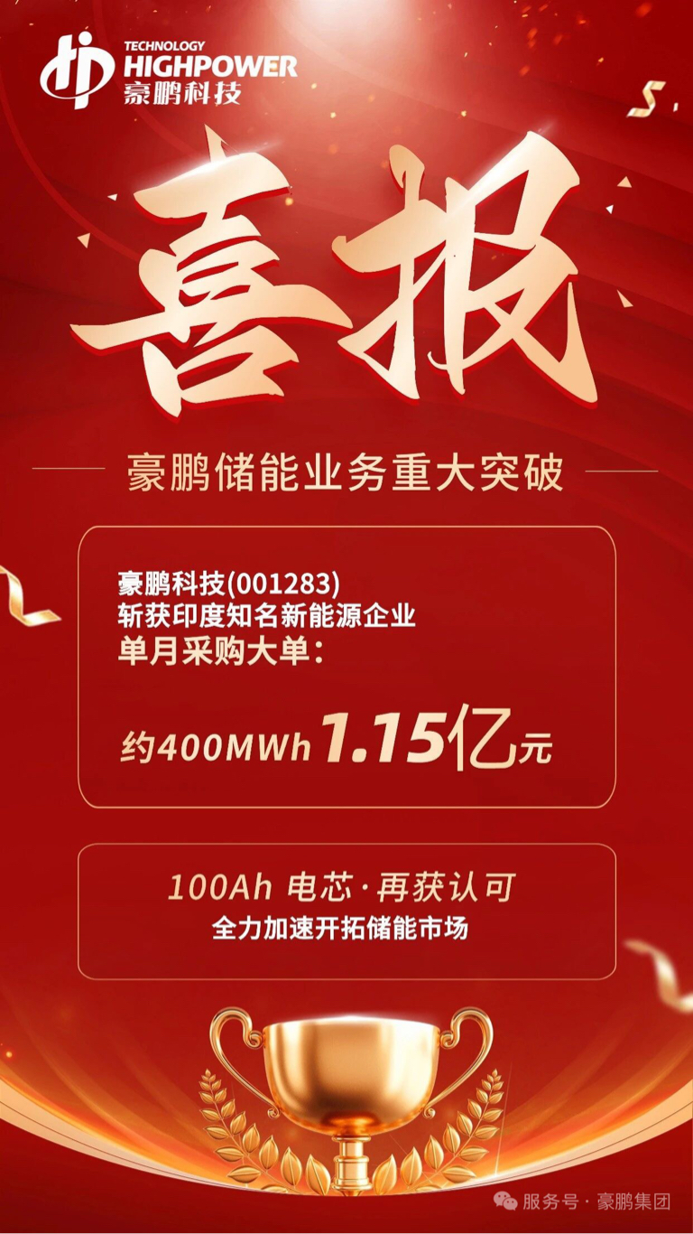 $豪鹏科技(SZ001283)$ 喜讯业务突破!突破!突破!