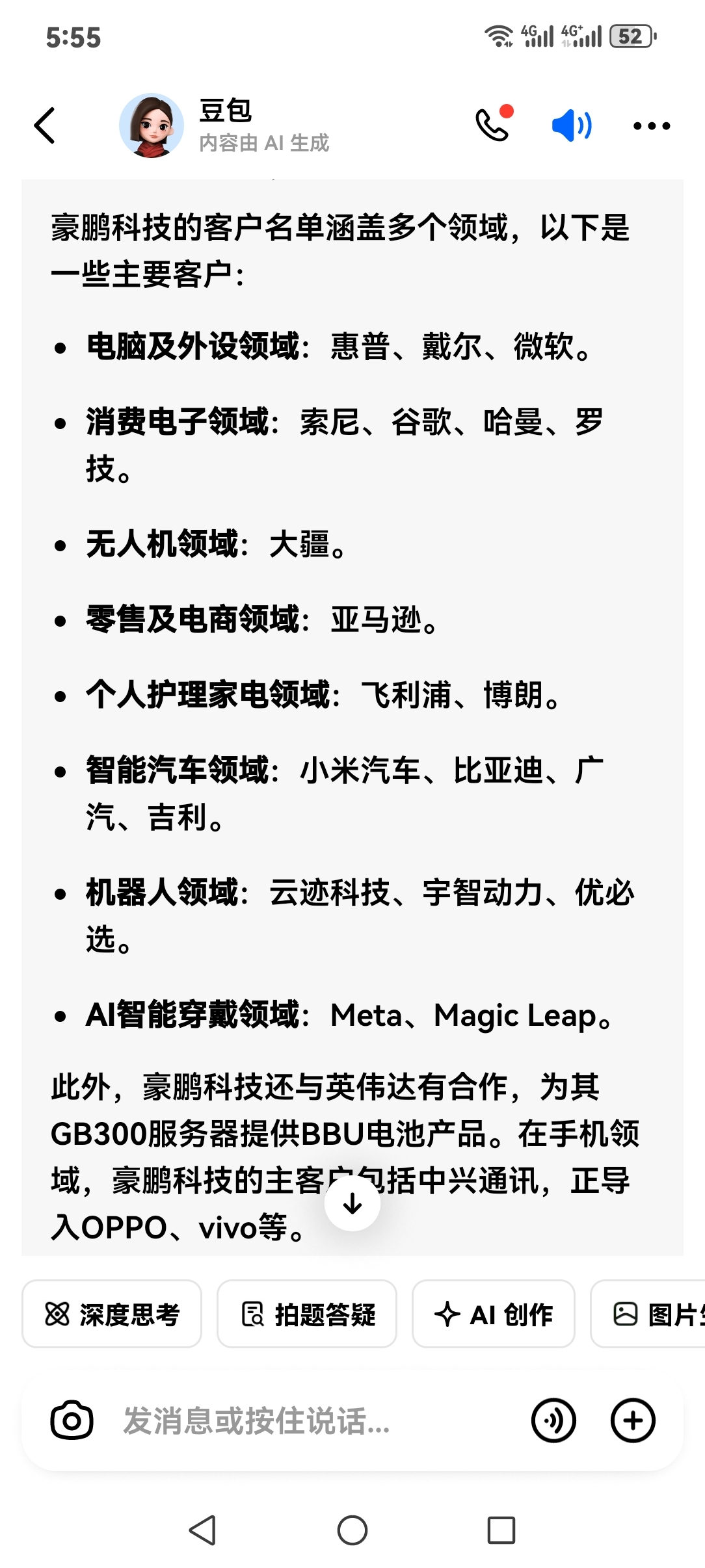 $豪鹏科技(SZ001283)$ 小盘绩优,业绩大增,订单饱满,产品主要供应国内外主要大厂,其中为英伟达GB300服务器提供BBU电池产品。