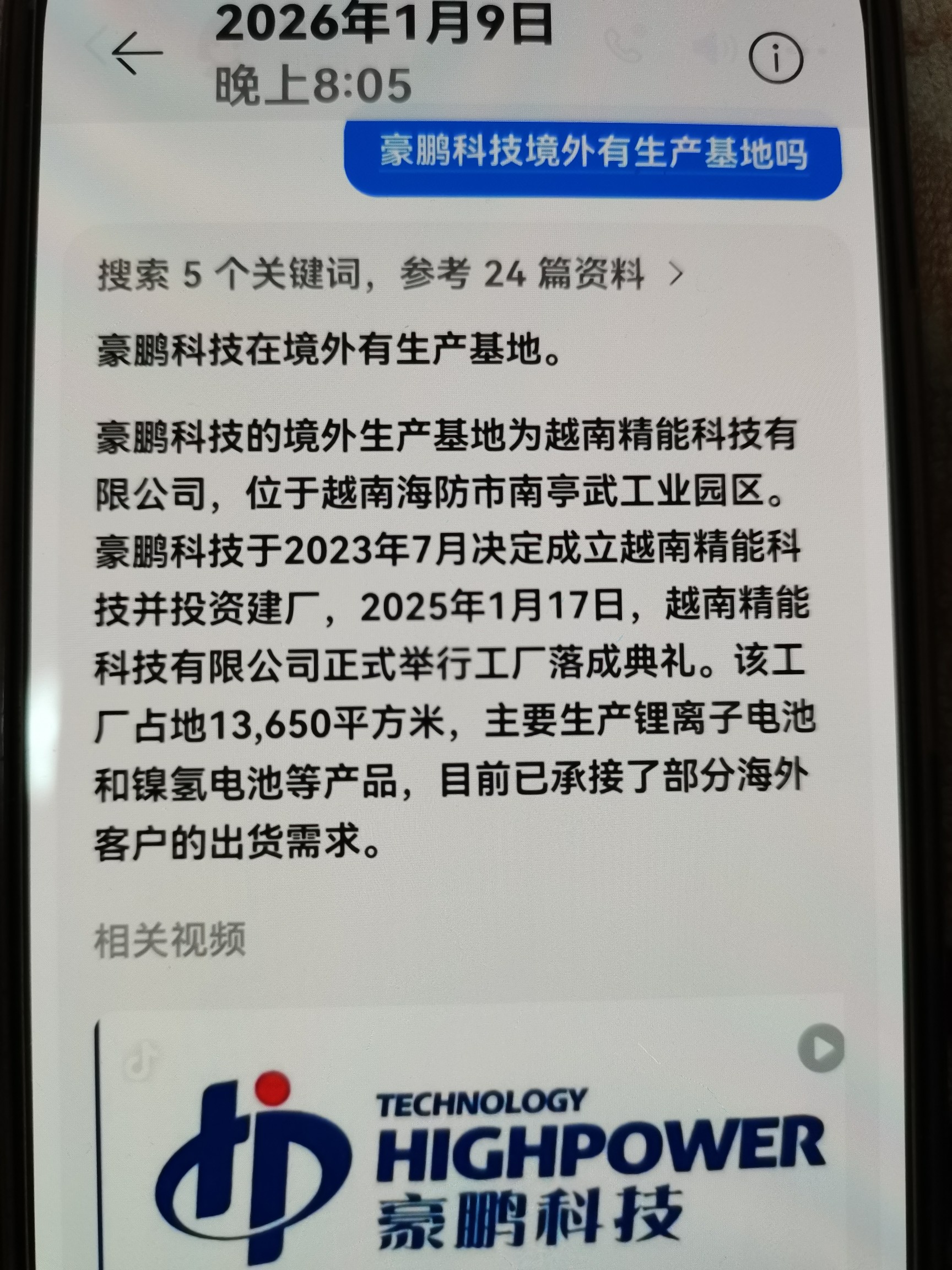 $豪鹏科技(SZ001283)$ 公司2023年就在越南投资建厂,2025年达产,承接海外客户出货要求。有效的防范了和政策变动带来的风险。为公司高层点赞。