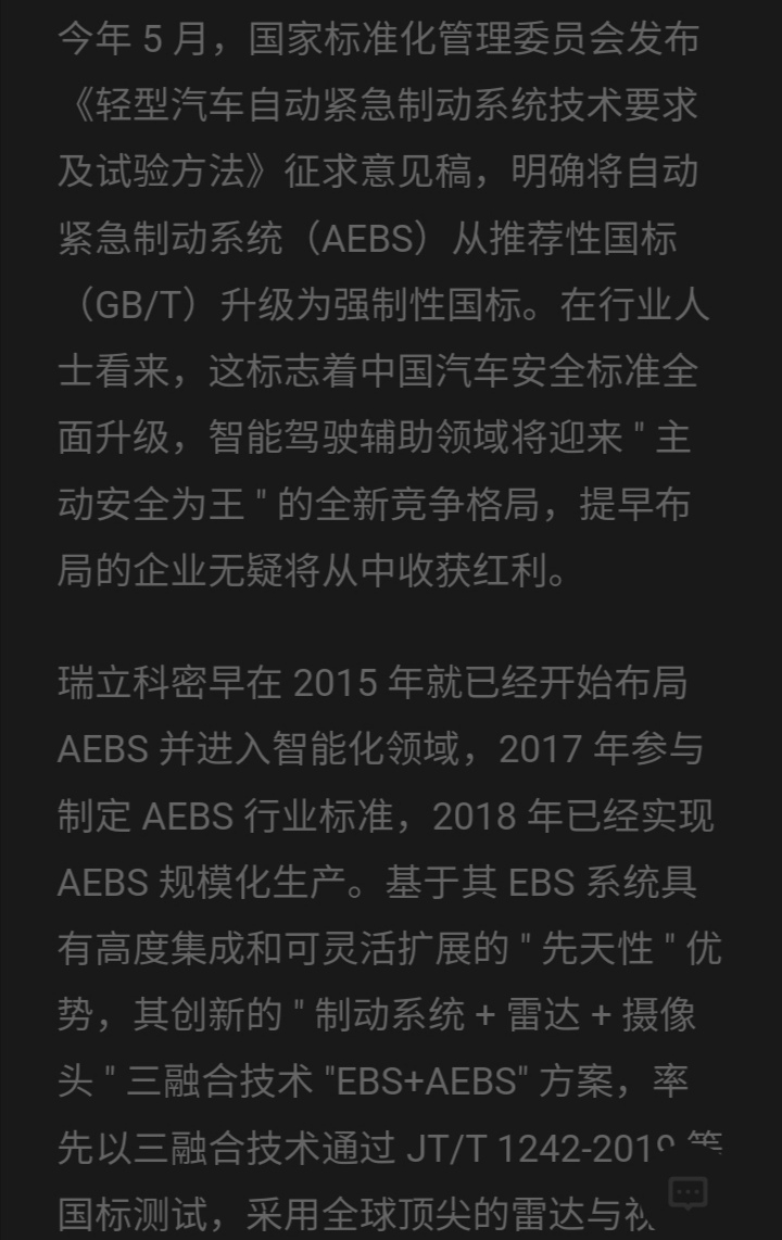 001285将是每年600亿元AEBS市场最大受益者的两大理由:1公司制动技术国