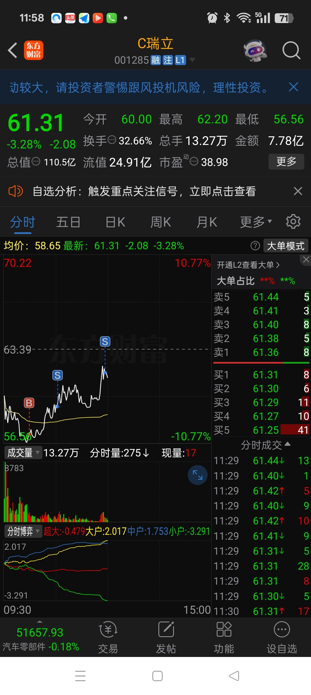 $C瑞立(SZ001285)$ 做点差价,不然什么时候能回本