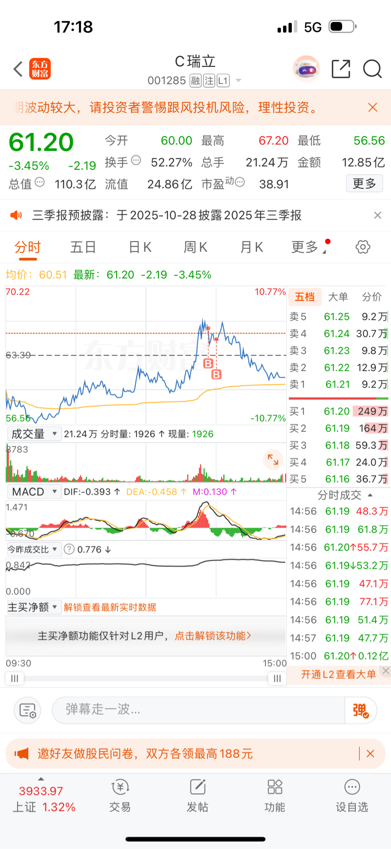 $C瑞立(SZ001285)$ 明天开盘有逃命的机会吗