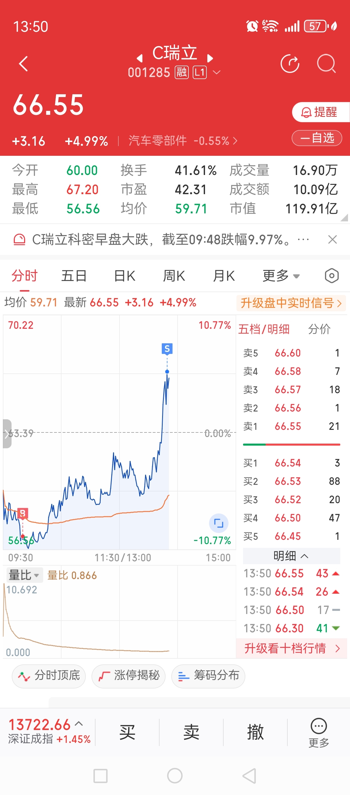 $C瑞立(SZ001285)$ 跌吧。跌就加仓做踢。反正中签的几百股慢慢玩。