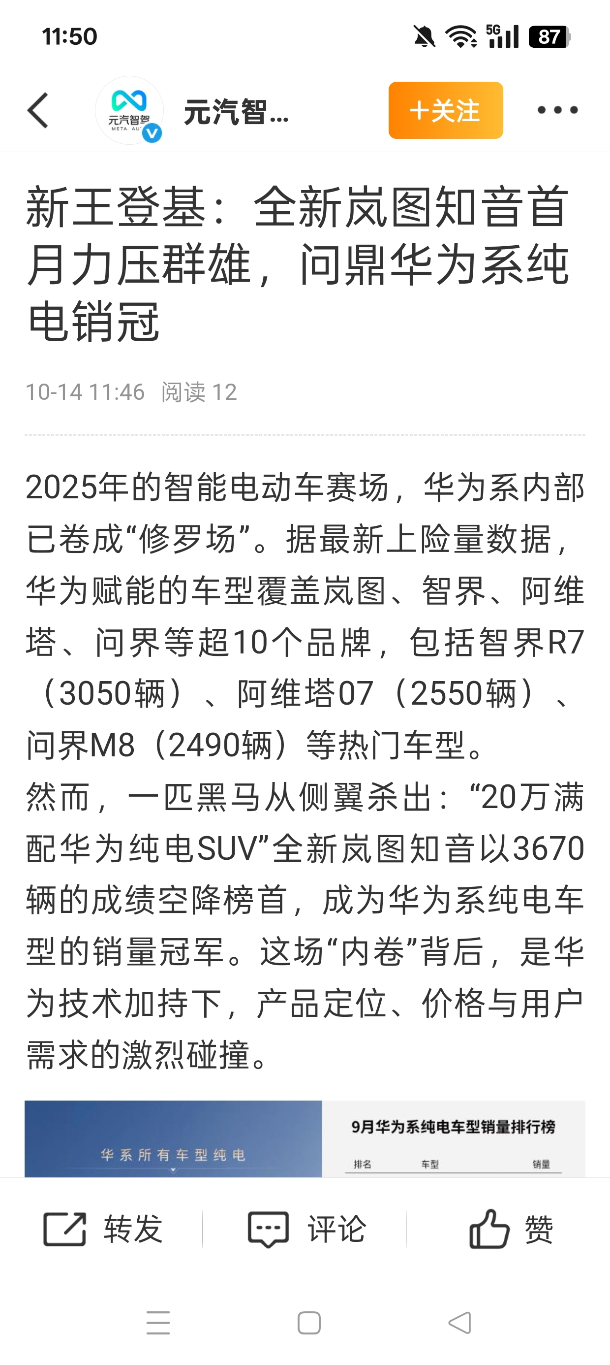 下午临停有可能。华为电动车排名第一。刚刚出炉。超级快充立功