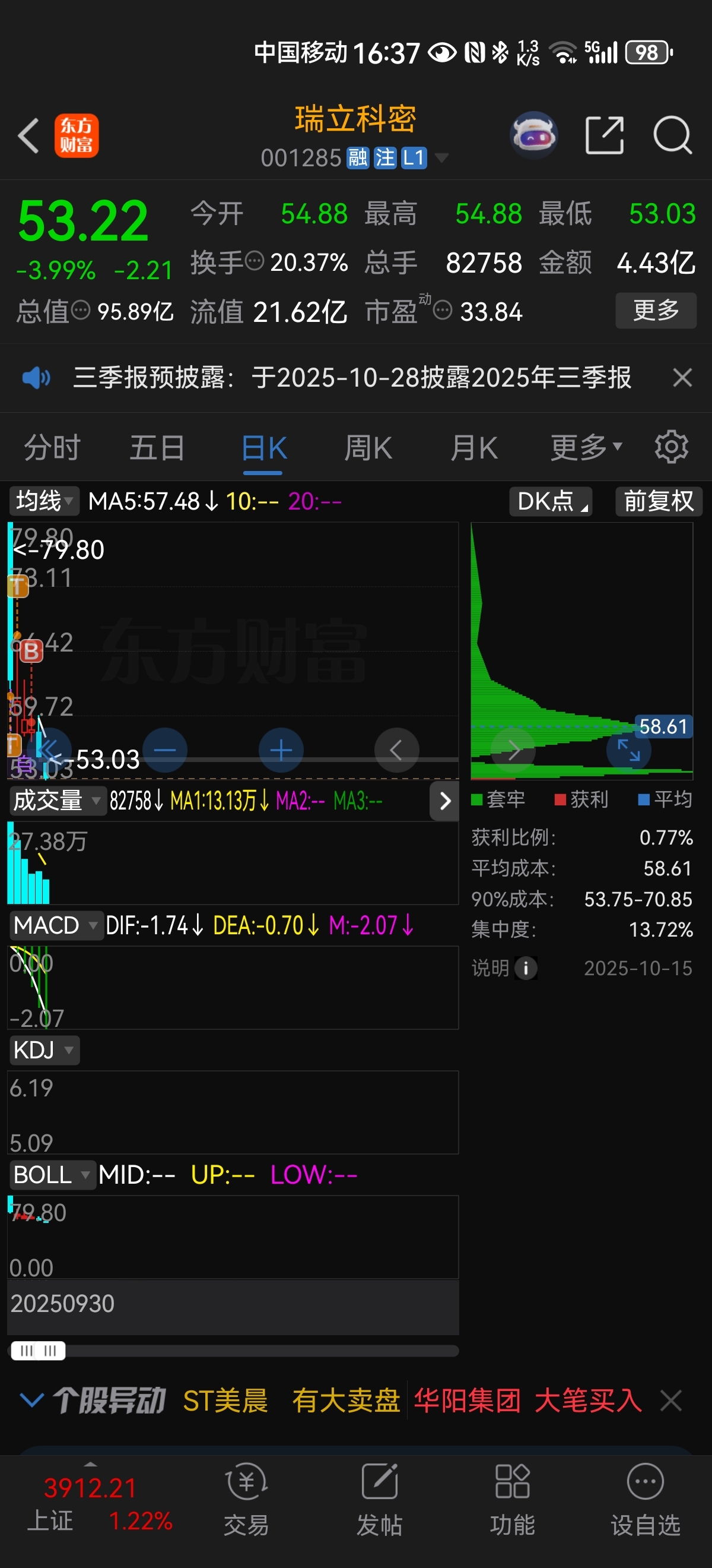 瑞立科密真厉害!上市六天,六连阴,天天跌,没一天红盘过,都快跌破发行价了,你说厉