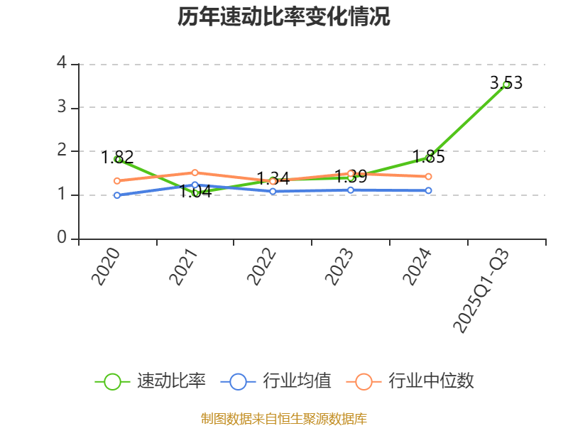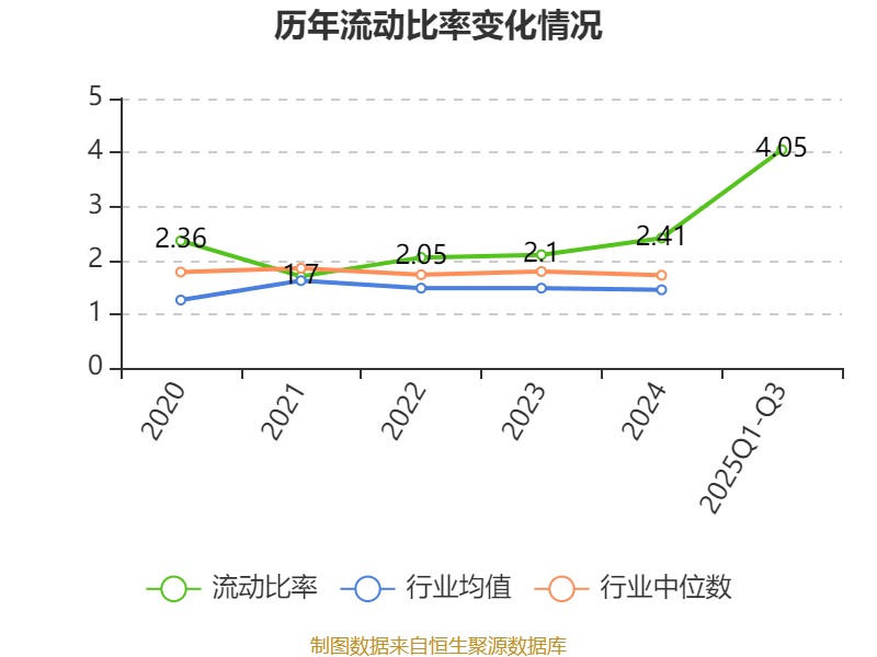 2025年前三季度,公司流动比率为4.05,速动比率为3.53。