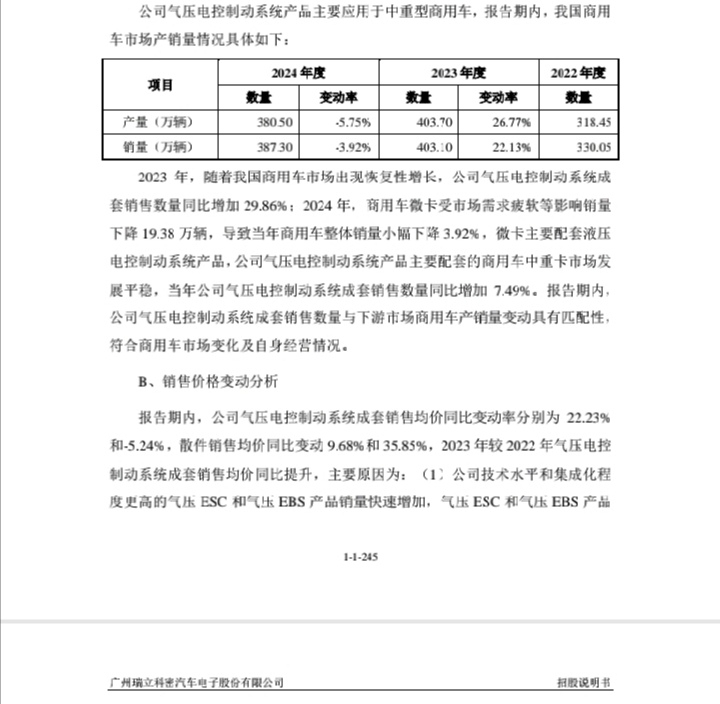 招股书表明我国商用车现在每年销量超300万辆以及001285的AEBS单价超2000元,所以我国每年的商用车AEBS市场规模为60亿元!001285的AEBS大幅领先国内所有竞争对手,包括万安科技!万安科技2024年报表明其商用车AEBS还在研发,今年上半年在互动平台表示有小批量订单!