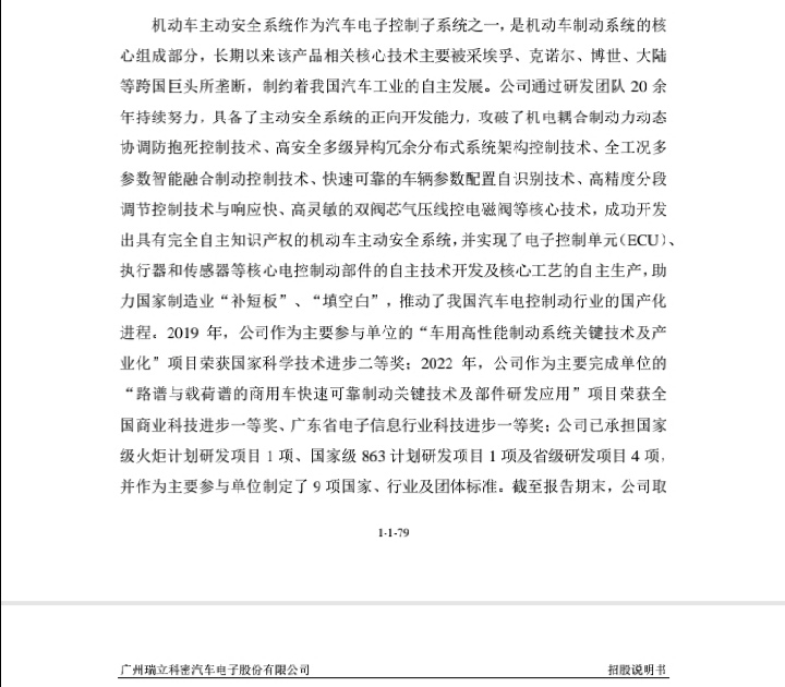 招股书表明001285制动技术获得国家科技进步二等奖