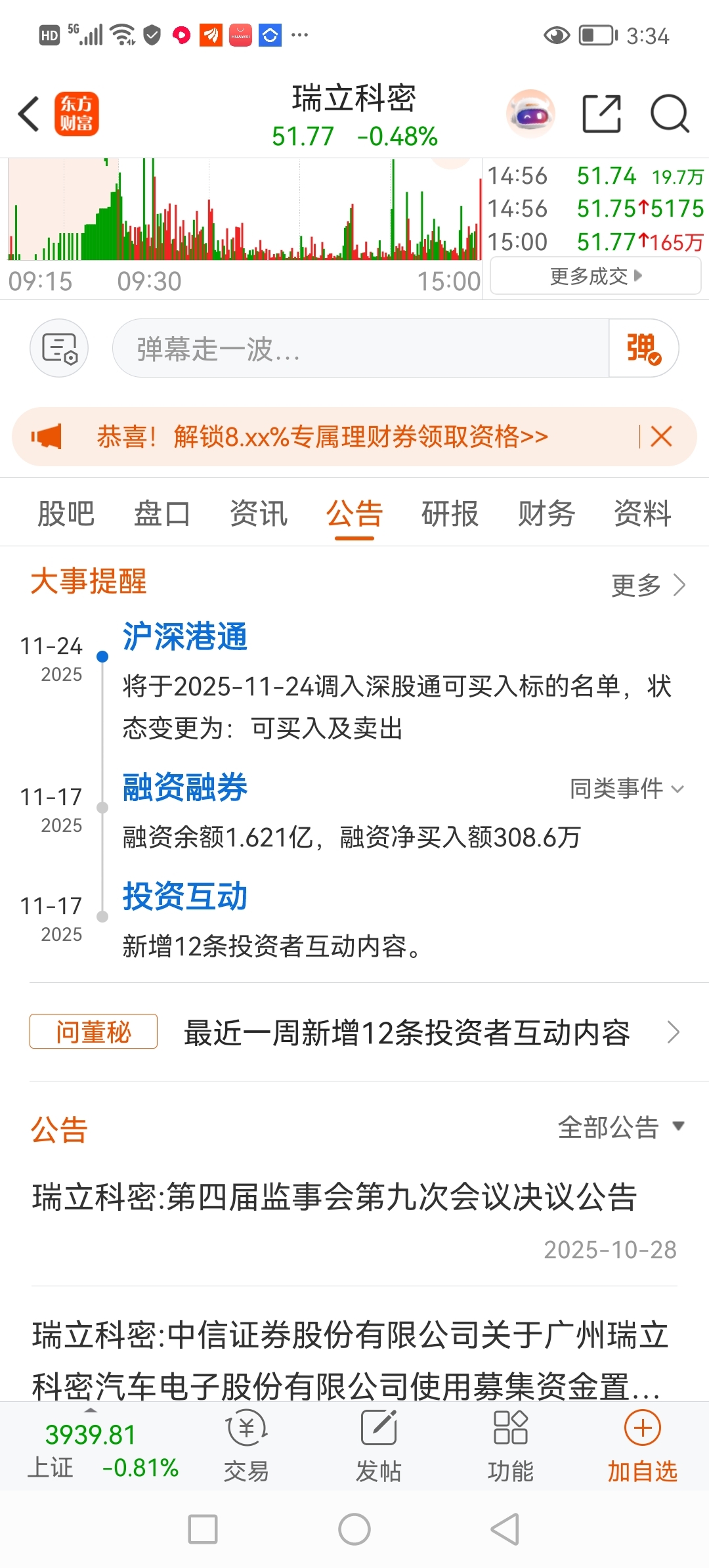 $瑞立科密(SZ001285)$ 对于真正优质的股票能够进入深股通,对于股票本身就是最大的利好消息。