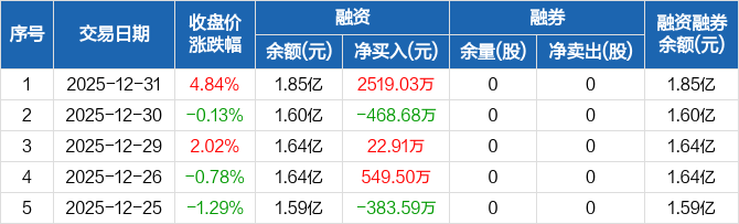 瑞立科密:融资净买入2519.03万元,融资余额1.85亿元(12-31)