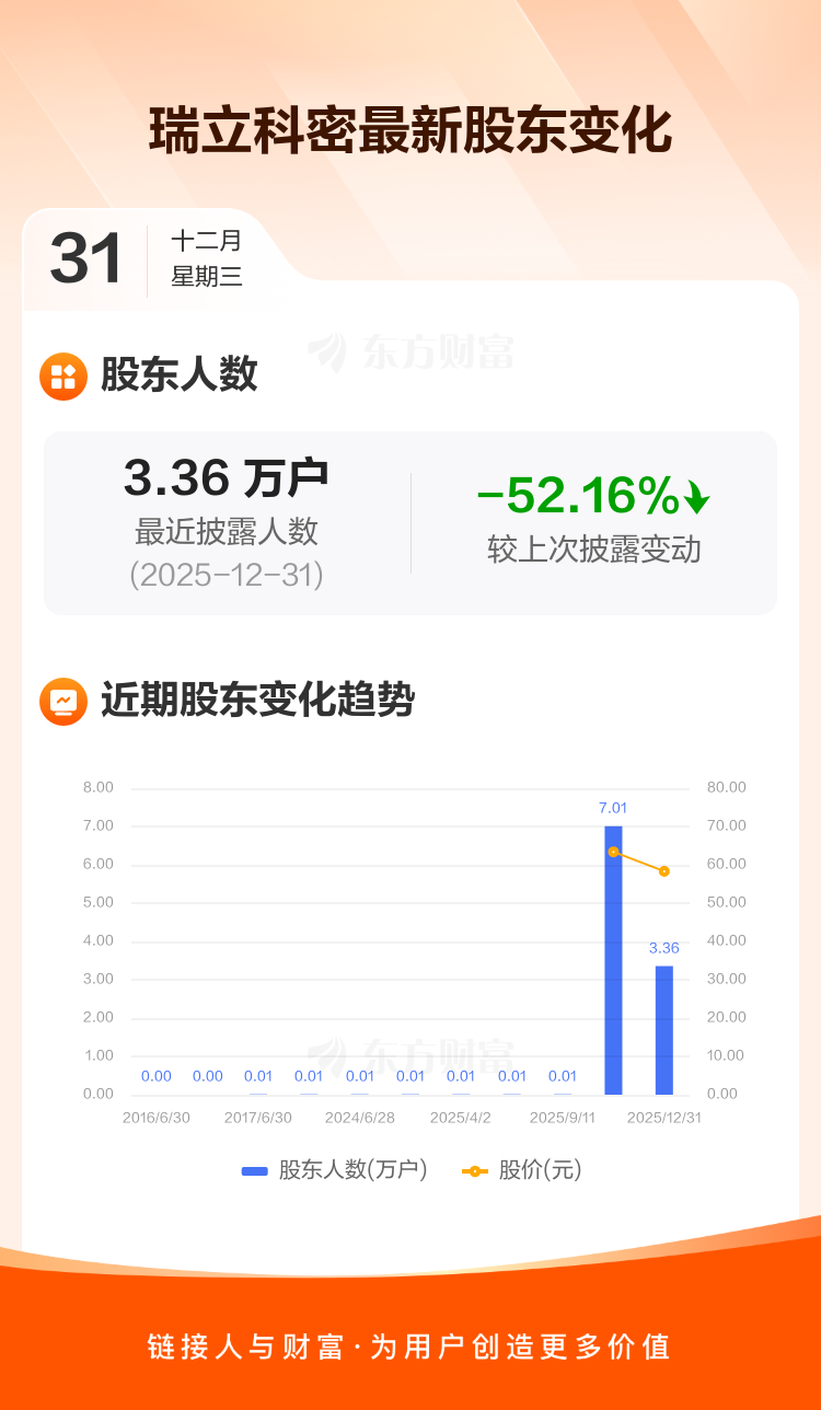 瑞立科密:截至12月31日最新股东户数3.36万户,较上期减少52.16%