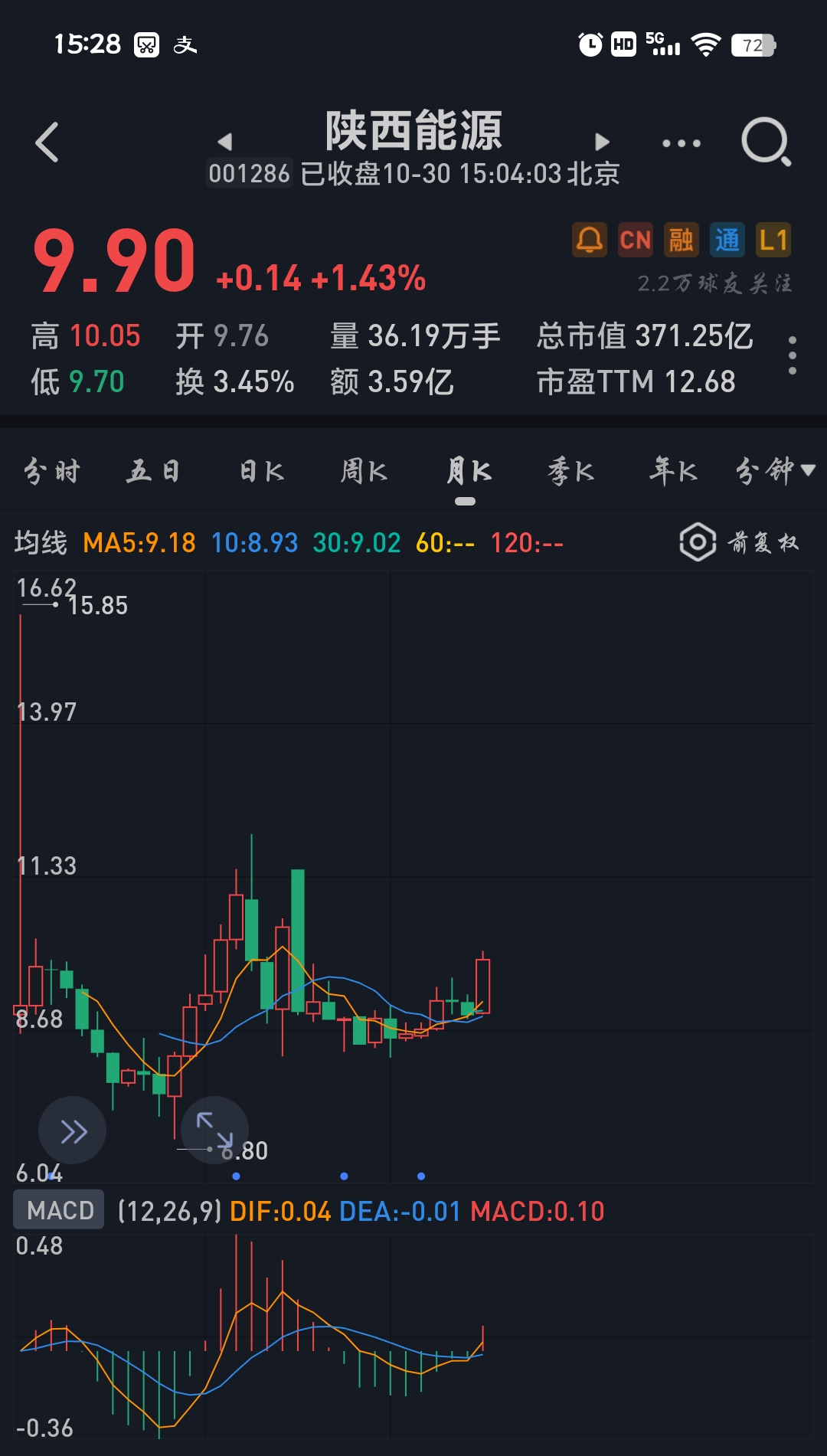 从上市到现在两年多,陕能的月线图呈现出一个标准的W形态,这是可遇不可求机会。