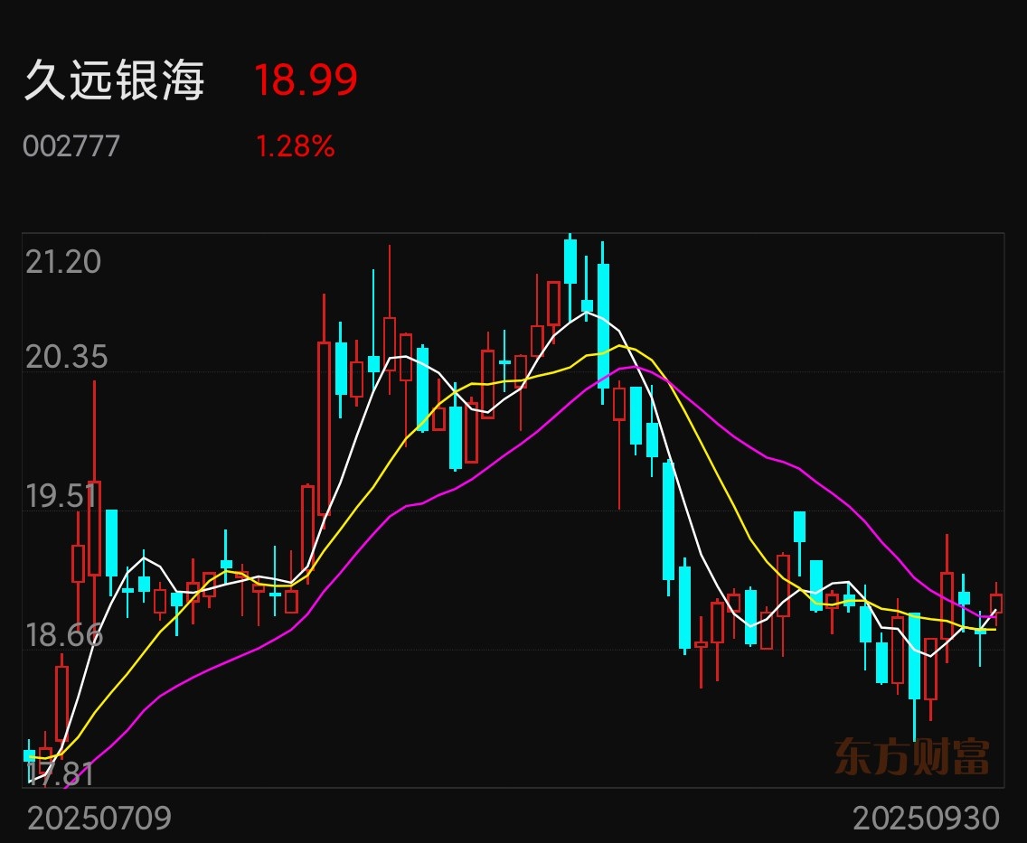 $久远银海(SZ002777)$ - 久远银海 :截至2025年10月5日,久远银海股价为18.99元,较前一交易日上涨0.24元,涨幅为1.28%。9月26日至9月29日期间,久远银海股价呈现波动下跌趋势,9月29日跌0.95%,成交额1.29亿元,换手率1.70%。从资金面来看,近3日主力净流入99.85万,但近5日主力净流入为-2775.17万,近10日主力净流入为-7229.18万,主力筹码分布非常分散。短线能否搞一下?