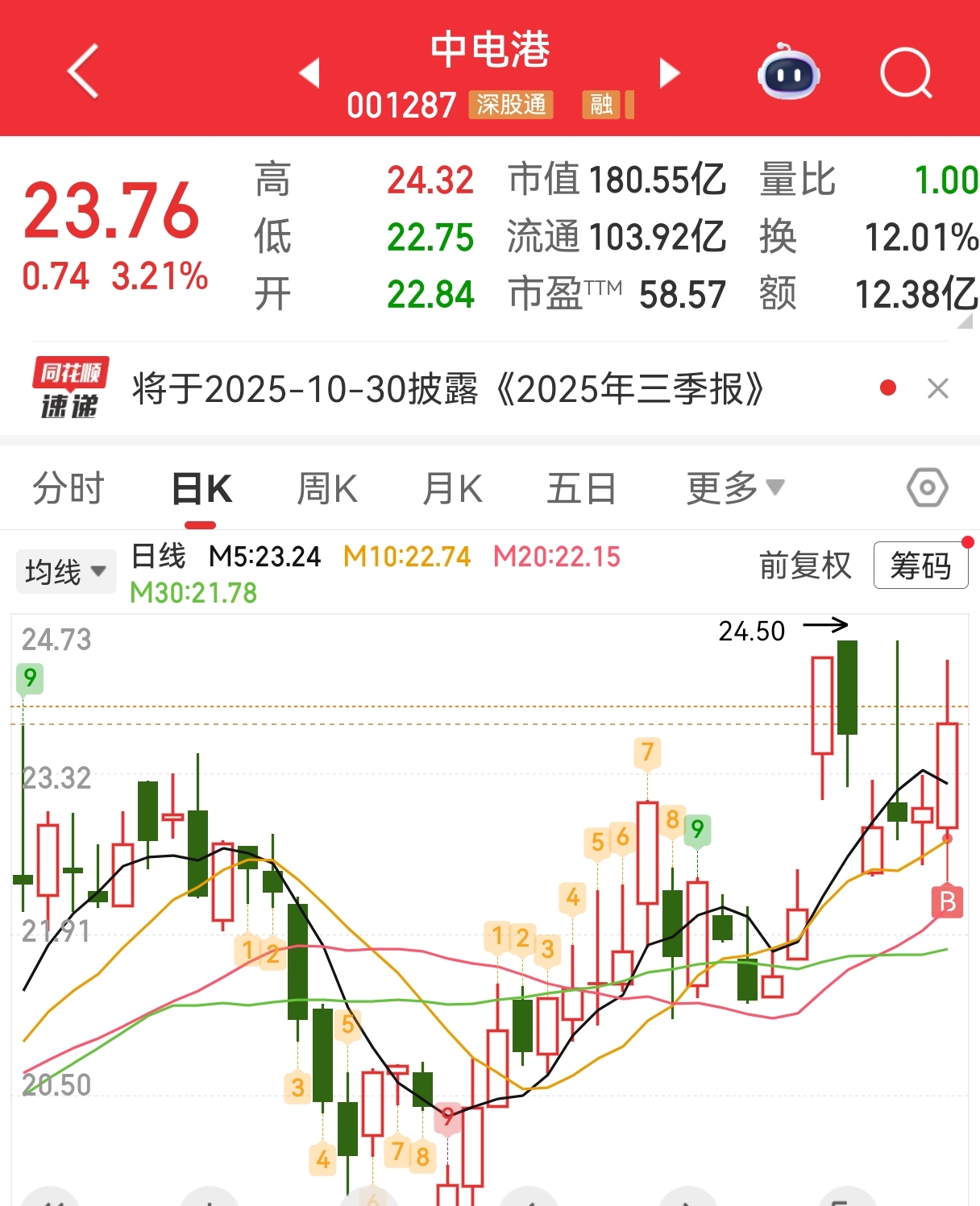 $中电港(SZ001287)$ 这个票吧,老夫一直以为是数据港,上了年纪这两票常搞混。今天进来小仓位建个仓,争取明天吃点肉。
