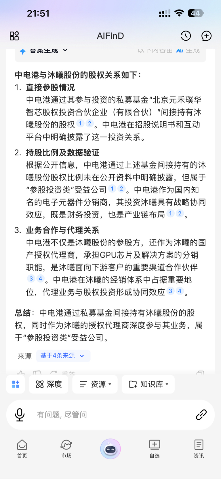 $中电港(SZ001287)$ 沐曦股份股东,这么多利好,为何不涨停三个?