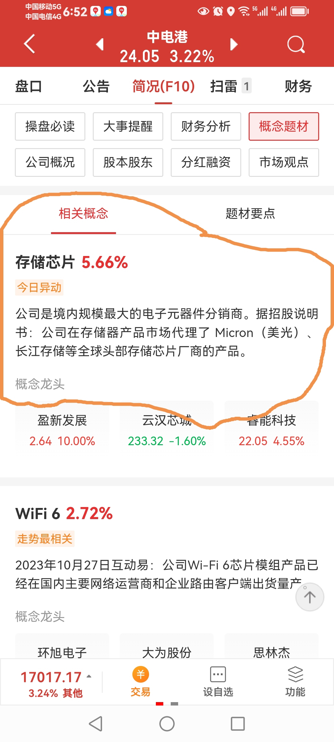 为什么财通软件都显示中电港是存储芯片概念板块,东财却没加上?