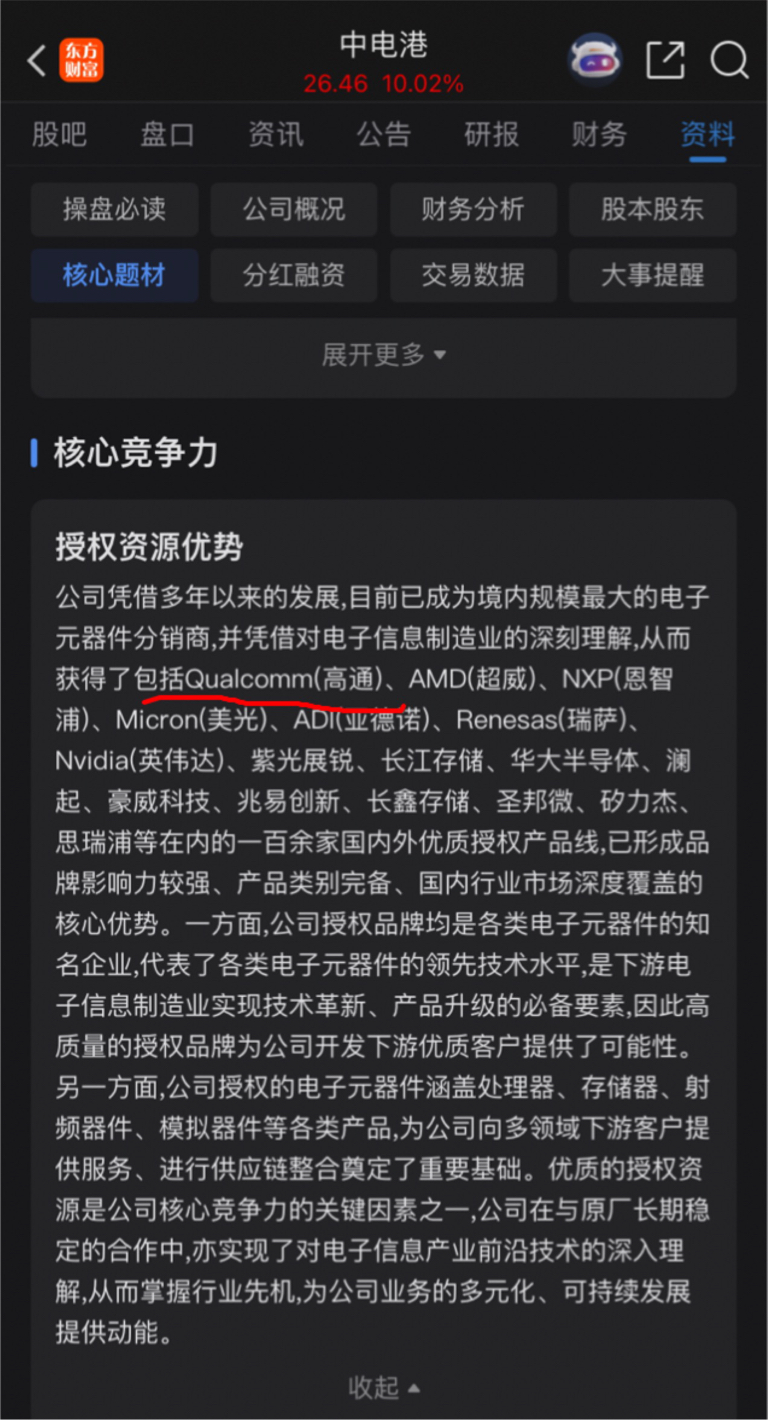 $中电港(SZ001287)$ 高通发来贺电。