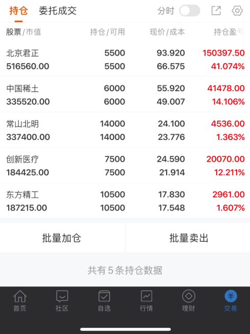 昨天也把老徐高兴了一把,早盘连续给到两次异动,每次大涨3.5%左右,还以为能给到涨停。考虑到已经达到第一目标,来到前期高位平台,需注意卖压压制回调的可能,对它进行了减仓。