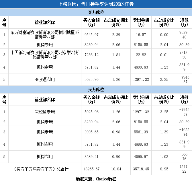 今日龙虎榜单上出现了深股通的身影,占据了买五、卖一的位置,净卖出7945.37万元,占当日成交总额的1.99%。
