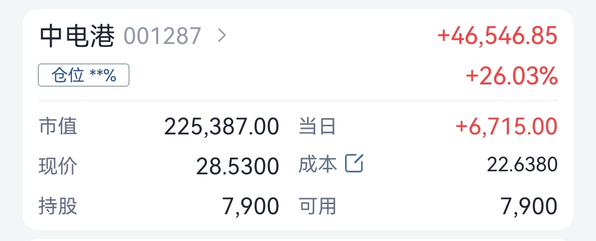 $中电港(SZ001287)$ 别的股票亏了全靠中电港补血,能做T就做T,不能做T就拿着不动,长期持有才是王道