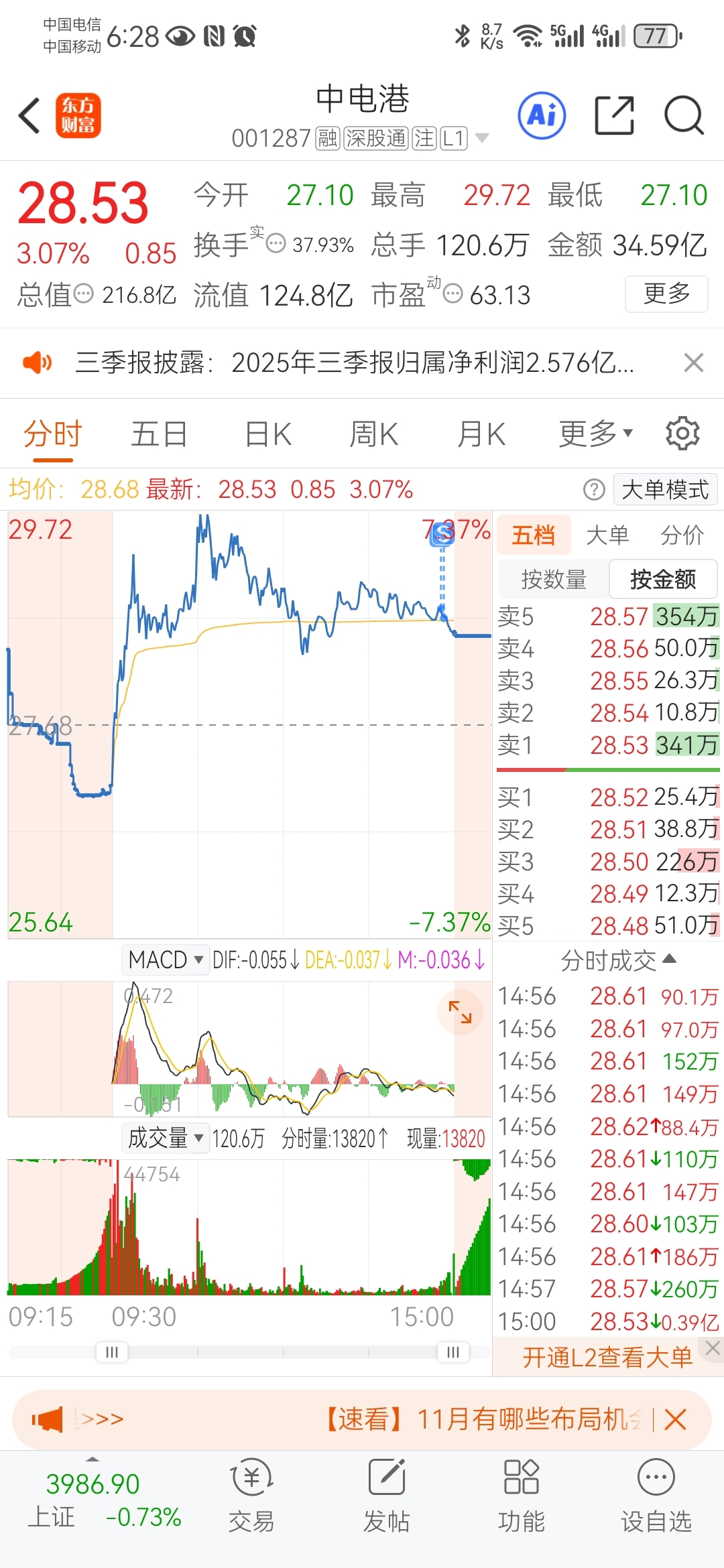 $中电港(SZ001287)$ 扛不住了!所以清仓了!不知道今天站不起昂29.11元明天等回调在来
