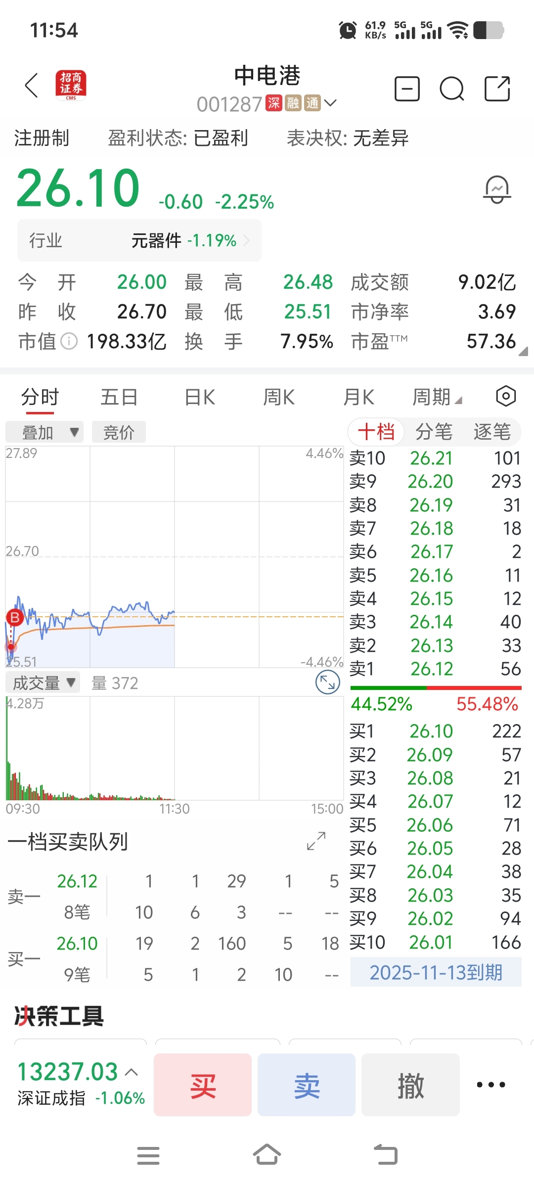 $中电港(SZ001287)$ 10.30号28.94买的今天25.56加了点主力今天能让我赚点钱吗亏死了。
