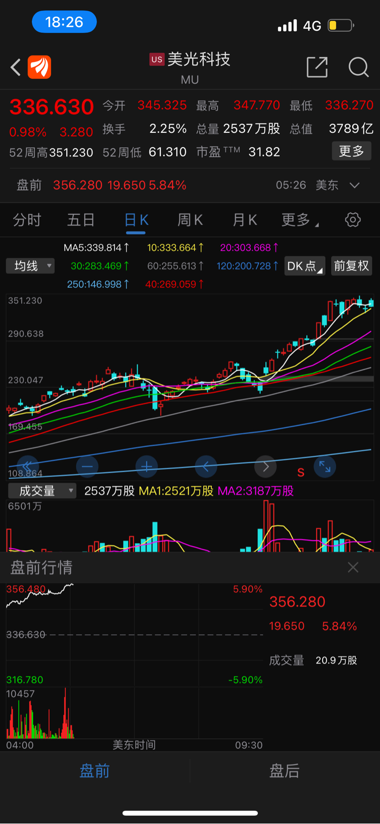 美光闪迪盘前都涨5%如果收盘保持住下周存储芯片的天下