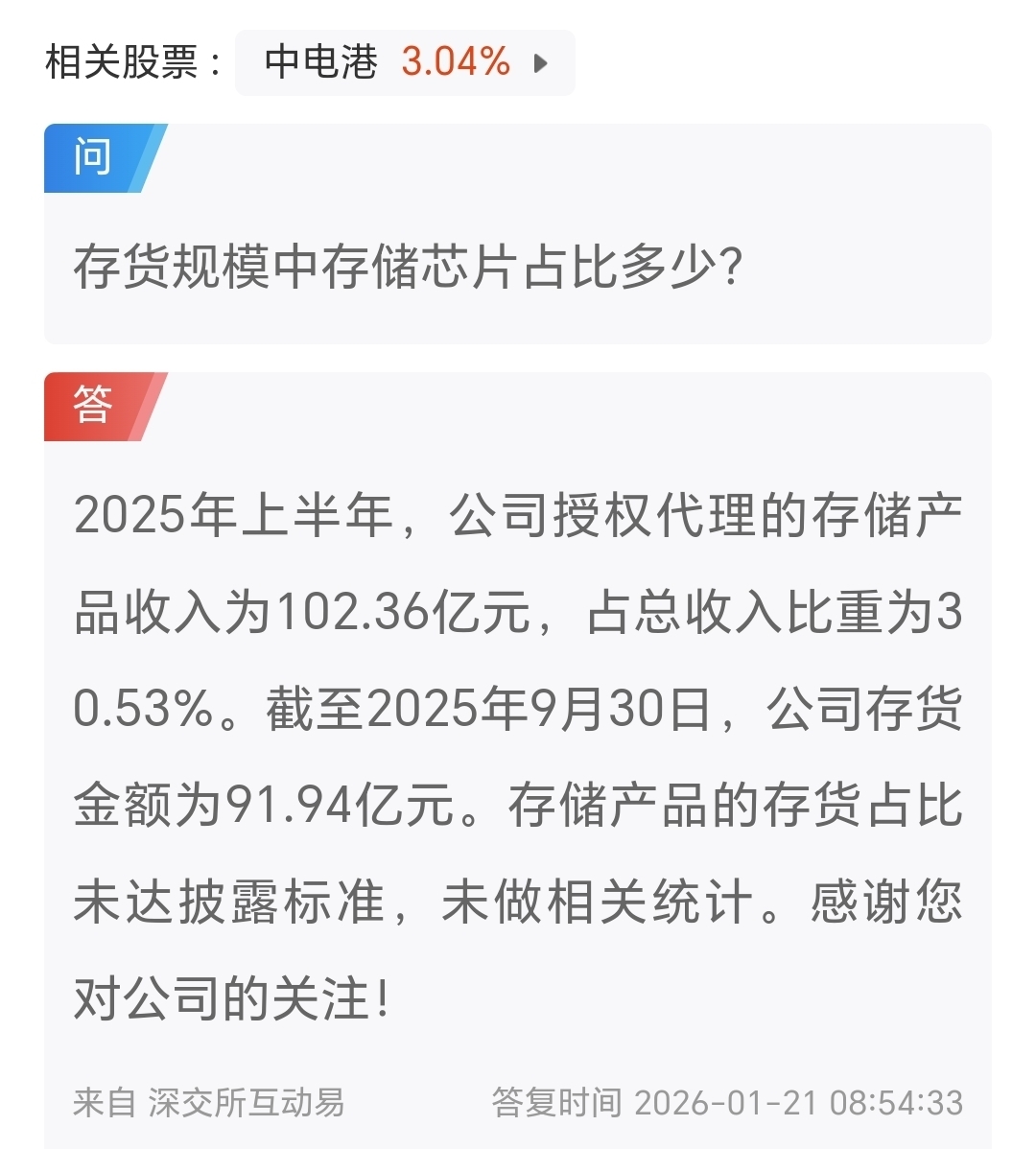 $中电港(SZ001287)$ 比黄金价格上涨还快:存储芯片;2025年度业绩还没有正式公告,第一家几年前百亿低价储备存储芯片,今躺赚百亿央企发动态:暗示预计2026全年业绩也增长100%以上。