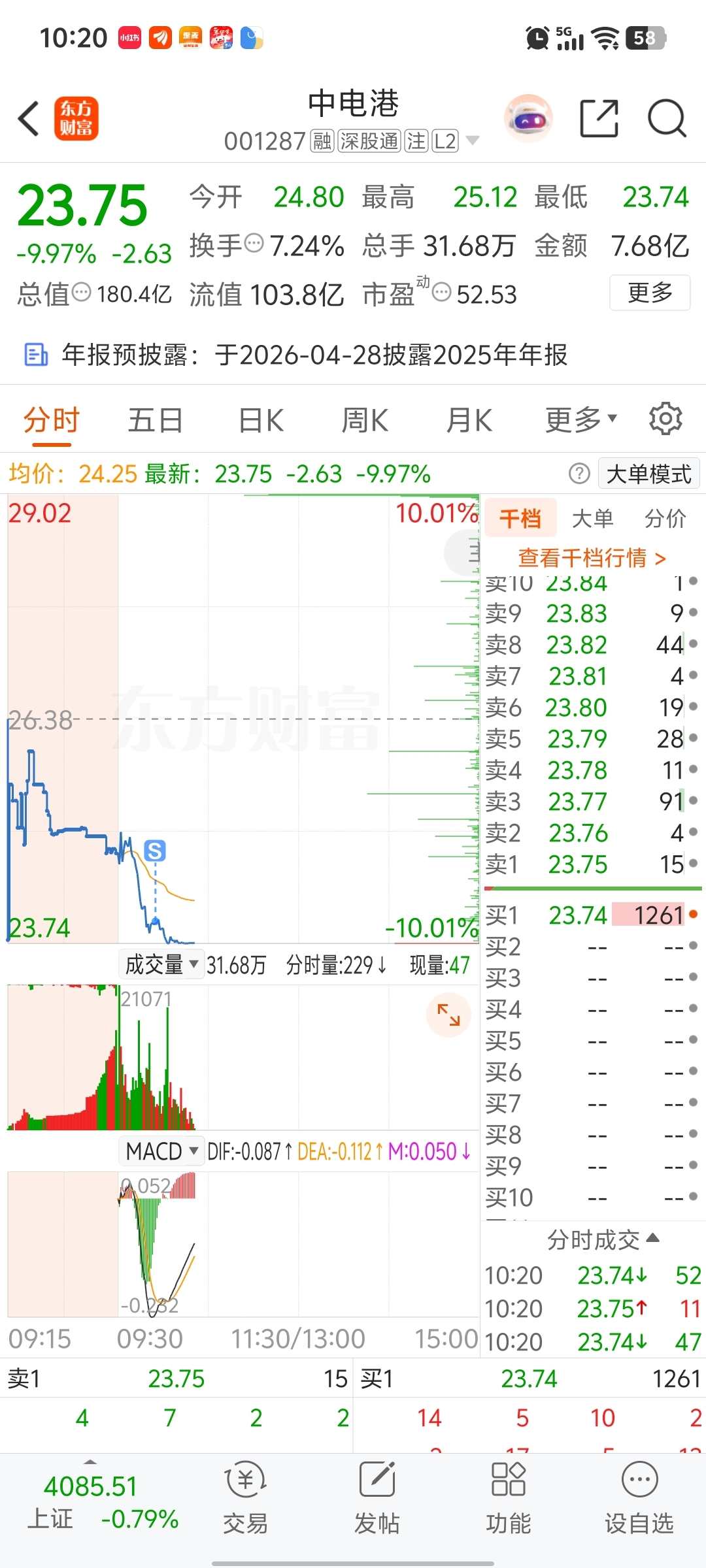 $中电港(SZ001287)$ 完完整整的吃了一个跌停