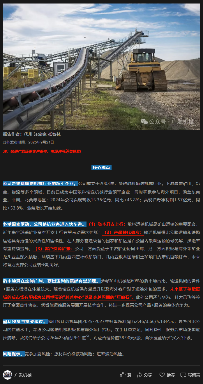 运机集团(001288.SZ)| 输送机械领军企业,出海画卷徐徐展开【广发机械】