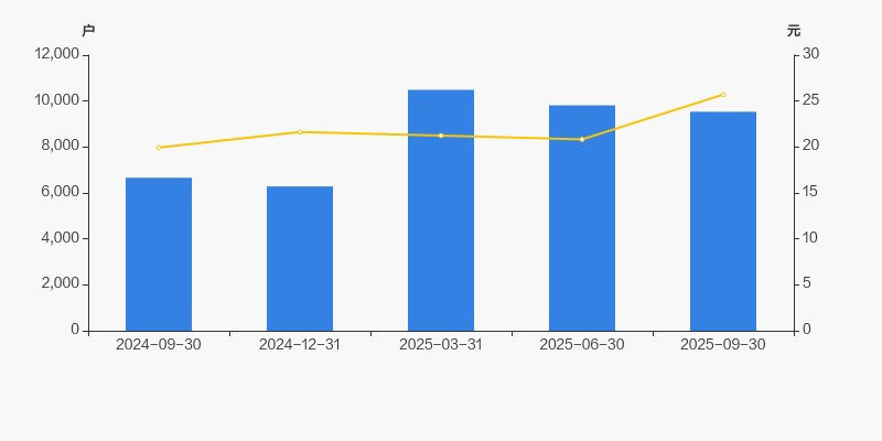 2024年9月30日至今,公司股东户数显著增长,区间涨幅为43.14%。2024年9月30日至2025年9月30日区间股价上涨28.87%。