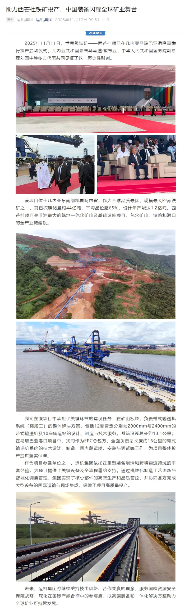 助力西芒杜铁矿投产,中国装备闪耀全球矿业舞台
