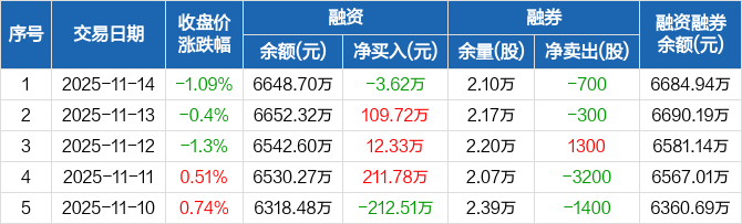 龙源电力:融资净偿还3.62万元,融资余额6648.7万元(11-14)