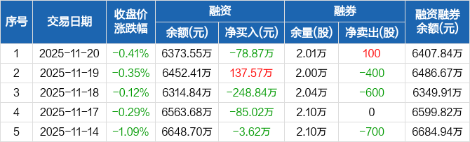 龙源电力:融资净偿还78.87万元,融资余额6373.55万元(11-20)