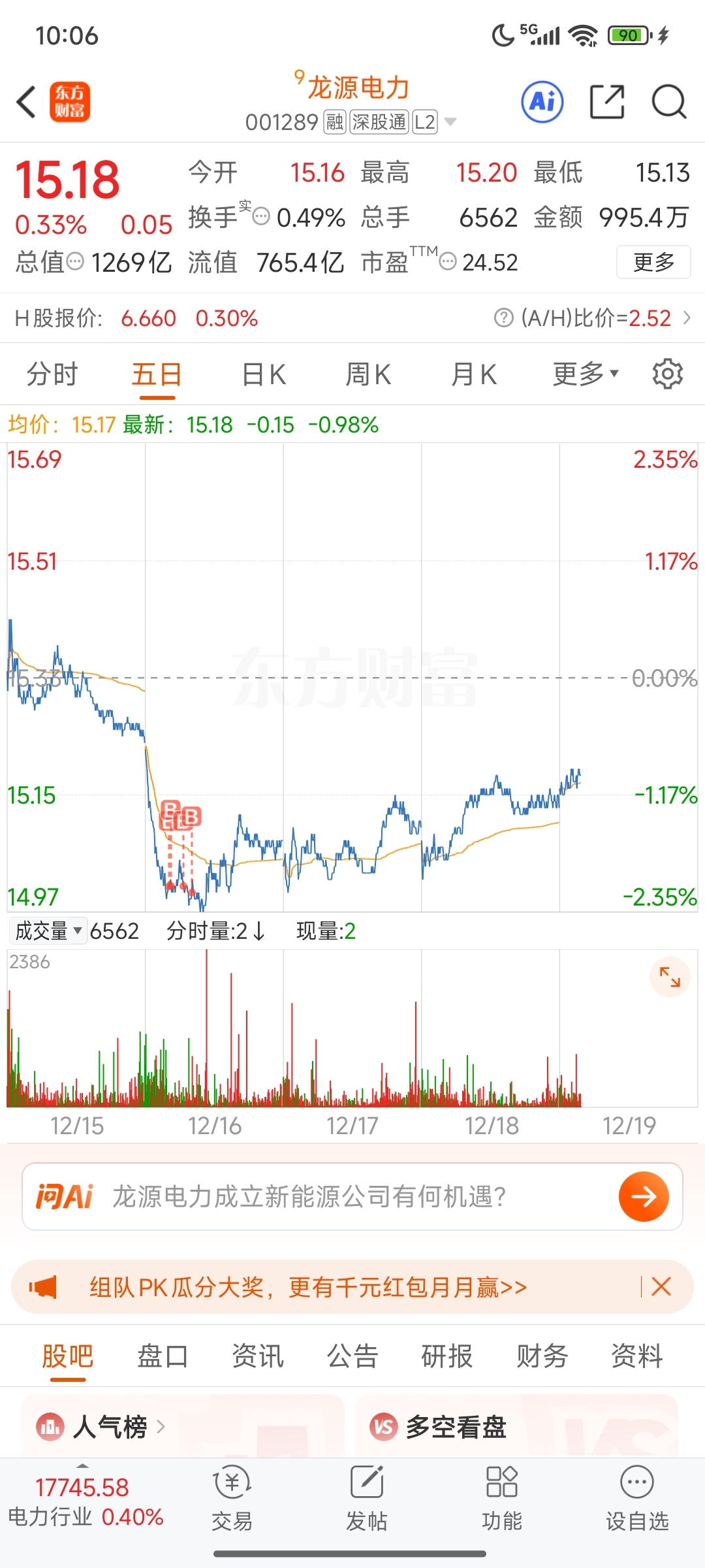 $龙源电力(SZ001289)$ 不涨的原因找到了,因为我来了,